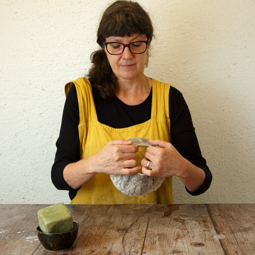 Feltmaking is an ancient and versatile craft. Allowing time, hands on their own are able to create the alchemy, and transform fibres into felt, with just the help of water and soap. It invites a slowing down, to follow the process and embrace some unanticipated results. And to a certain degree… to accept what happens…In felt making you can not undo what is done.